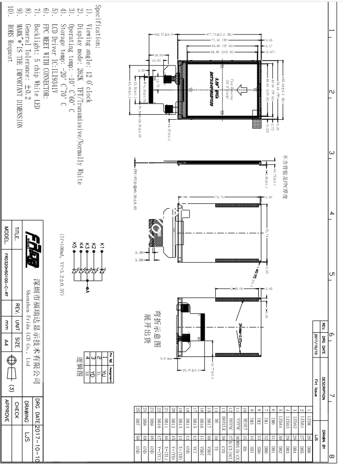 LED背光:白色高亮LED,四顆燈并聯(lián)