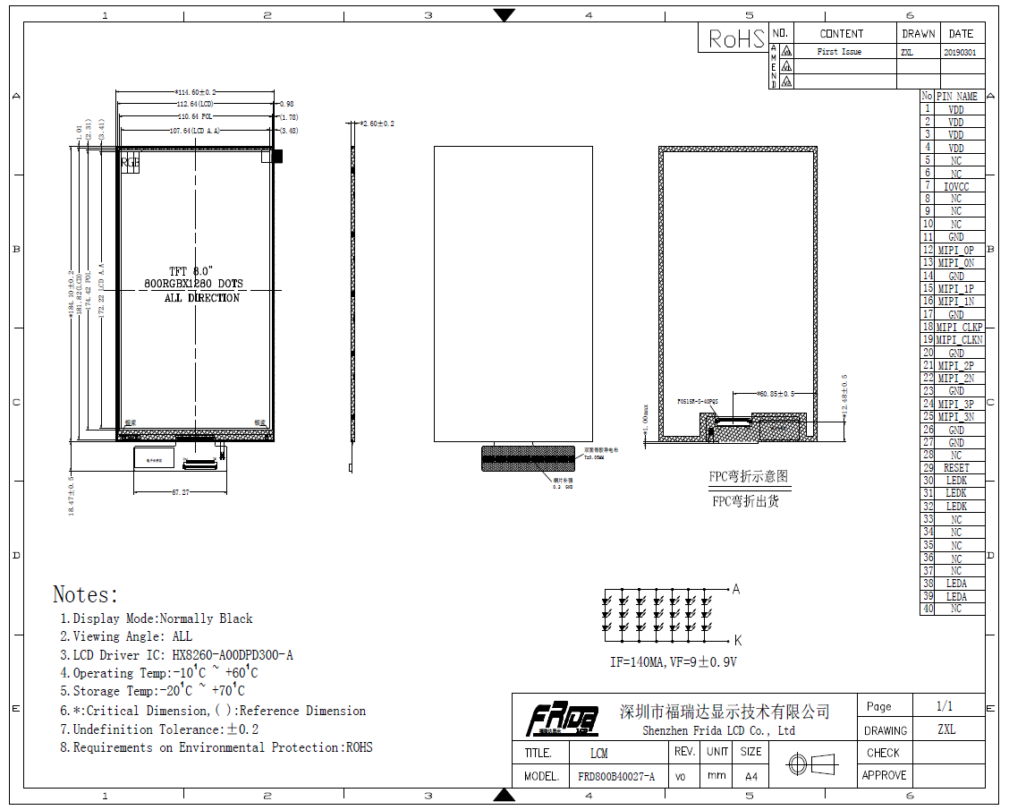 TFT液晶顯示屏規(guī)格書(800*1280)產(chǎn)品聲明:以上產(chǎn)品為我司標準產(chǎn)品,可根據(jù)客戶要求進行產(chǎn)品定制; 網(wǎng)站上所列產(chǎn)品之外觀、顏色、參數(shù)僅供用戶參考,以福瑞達顯示公司生產(chǎn)實物為準,客戶朋友們?nèi)鐚Ξa(chǎn)品有任何疑問請盡快與我們?nèi)〉寐?lián)系,我們將竭誠為您服務(wù),謝謝! 產(chǎn)品應(yīng)用:8.0寸HD液晶屏(800*1280)產(chǎn)品多帶電容觸摸總成出貨,主要應(yīng)用于手機行業(yè),福瑞達產(chǎn)品應(yīng)用于三防手機、兒童監(jiān)視器、智能POS、人臉識別等涵蓋工控、智能家具、消費類電子等多個行業(yè),讓尋常生活更家便利多彩。 目前我司現(xiàn)有8.0寸TFT液晶屏有多種PING數(shù)、ping定義的接口可選