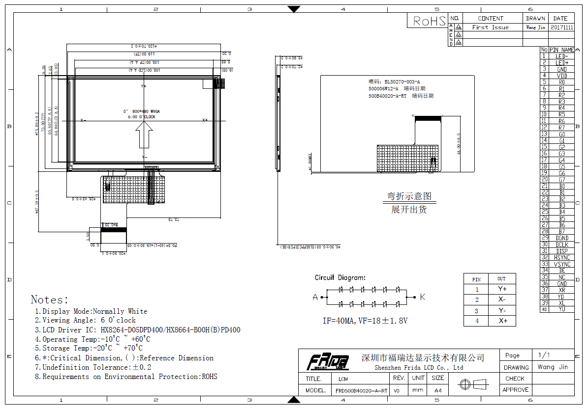 5.0寸TFT液晶彩屏模組 無觸摸/電阻/電容觸摸均可 5.0寸TFT液晶彩屏模塊數碼800*480RGB接口插接 帶觸摸、電阻觸摸、可不帶電容電阻觸摸 產品聲明:5.0寸TFT液晶彩屏模塊數碼產品為公司標準品,非標產品可根據客戶要求進行產品定制; 網站上所列產品之外觀、顏色、參數僅供用戶參考,以福瑞達顯示公司生產實物為準,客戶朋友們如對產品有任何疑問請盡快與我們取得聯系,我們將竭誠為您服務,謝謝! 產品應用:7.0寸TFT液晶彩屏模塊數碼可單屏出貨也可以帶觸控出貨,應用廣泛,工業(yè)控制人機交互、三防平板、門禁道閘、金融手寫板等智能家具、工控顯示、金融、消費類電子產品等多行業(yè)多領域,讓現代生活更家使得多彩! 產品型號:FRD500B40020-A-RTP ,分辨率:400×(RGB)×600 產品亮度:350-2000cd/m²可定制。